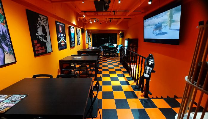 昆明派對場地位於台北市西門町商圈,距離西門捷運站步行僅約10分鐘,非常適合您和好友在附近享用晚餐後包場續攤。昆明館屬於小型聚會場地,以美式漫畫風格的裝潢為特色,搭配KTV、電動遊戲、麻將桌、以及調酒暢飲,打造成非常適合好友聚會的遊戲空間。